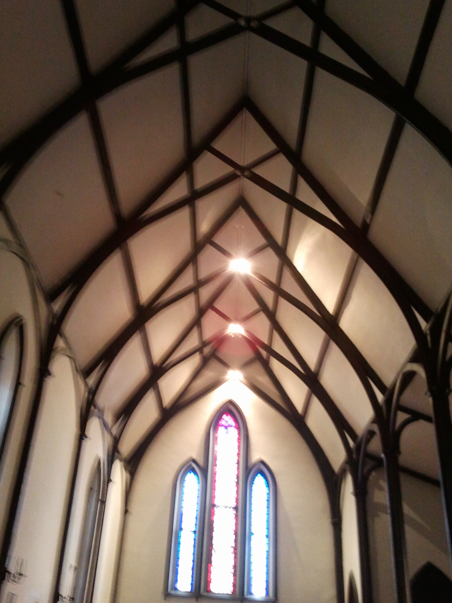 Looking at the windows with the warm sun streaming through them, our thoughts are lifted as our eyes are led upward to the vaulted ceiling. Our hearts and minds rise along with our eyes and it is easy to praise God for the beauty and grandeur of creation.